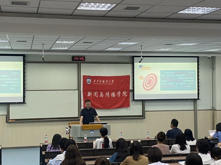 为向2021级新生进一步宣传卓越新闻传播人才培养实验班,解答新生们的相关疑问,9月7日下午于SA102举行卓越新闻传播人才培养实验班宣讲活动。模特私拍 院长黄建友、欧洲学院院长张世胜、模特私拍 副院长李鹏、欧洲学院西语教研室主任曹韦、2021级辅导员白丫、2020级辅导员王嘉闻参加了此次会议。